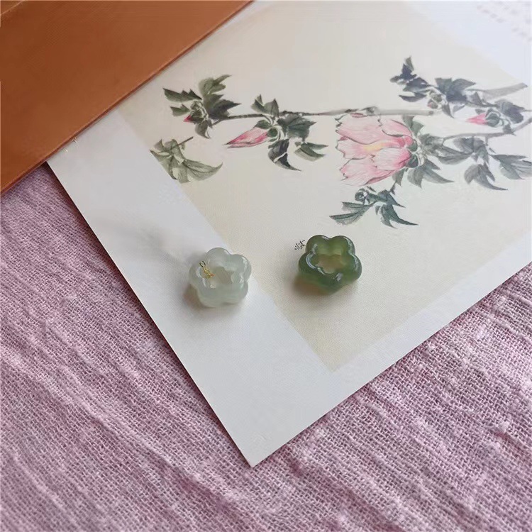 2025 Imitation Hetian Jade Plum Blossom Pendant Necklace for Women DIY Hollow Design Antique Style Clavicle Chain Green Jade Pendant