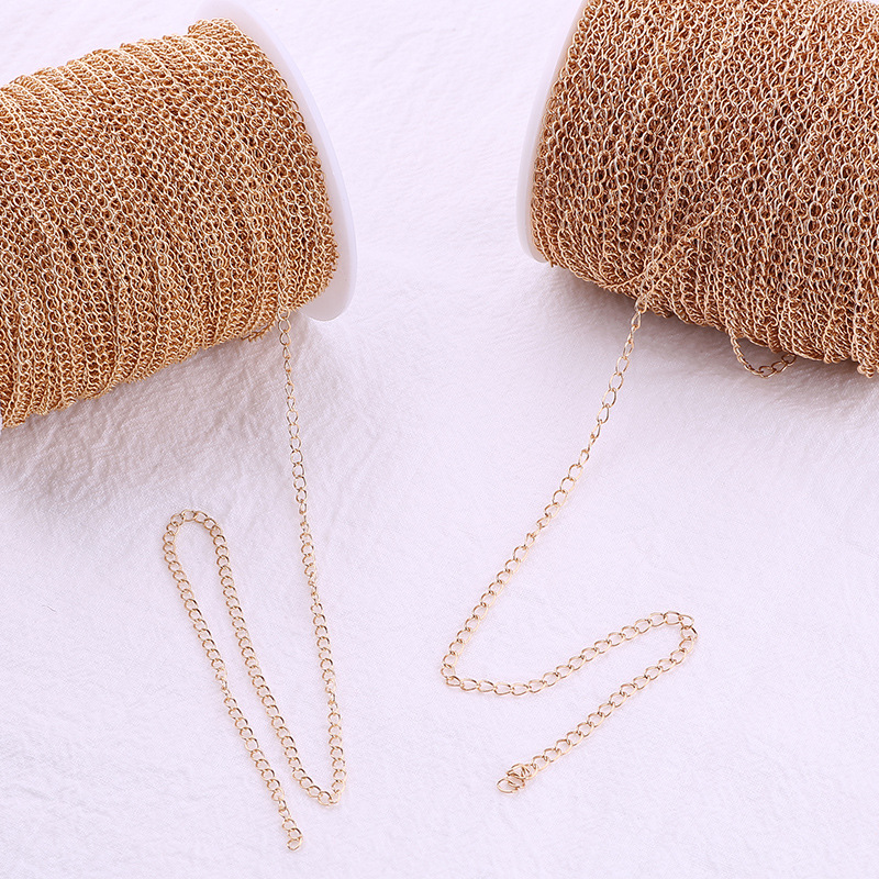 Pure copper plated real gold color preserving KC gold o chain necklace bracelet extension chain round hole copper chain Handmade jewelry chain