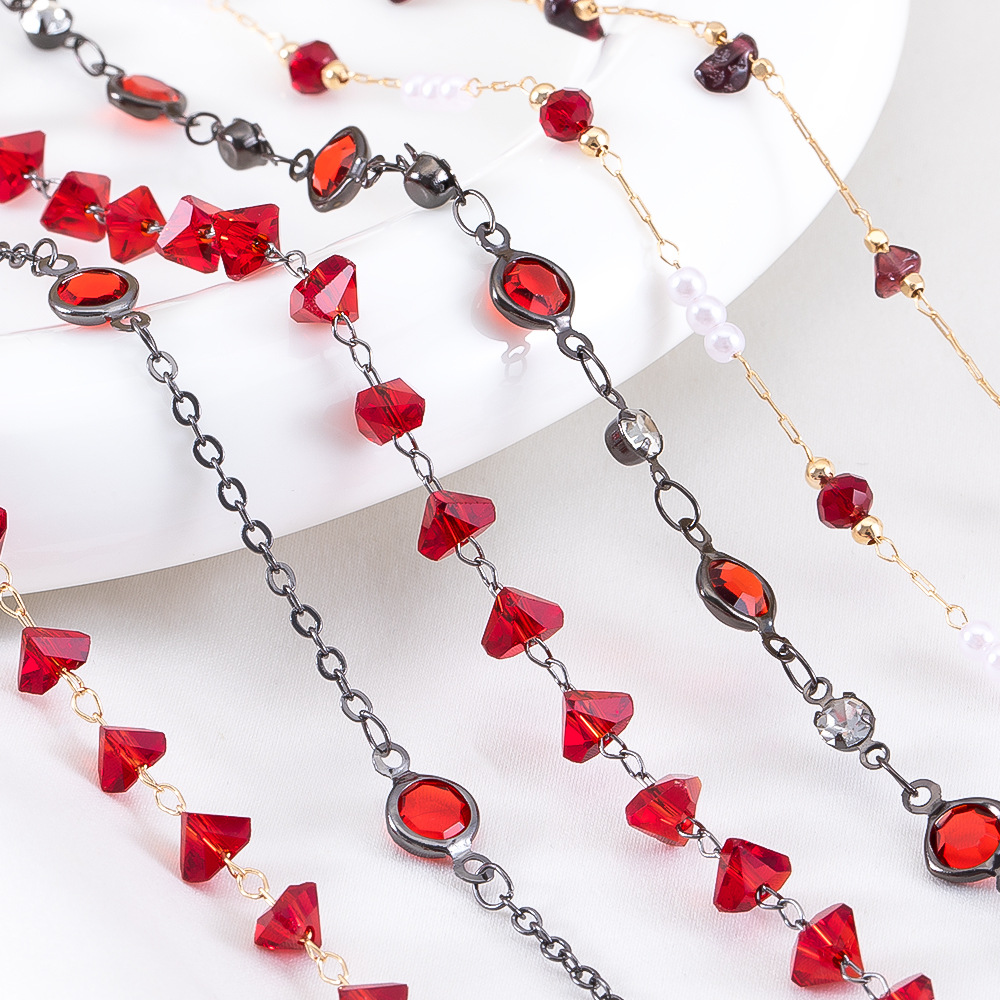 6mm Dark Red Triangular Crystal Copper Chain DIY Chain Jewelry Accessories Handmade Bracelet Necklace Headscarf Jewelry