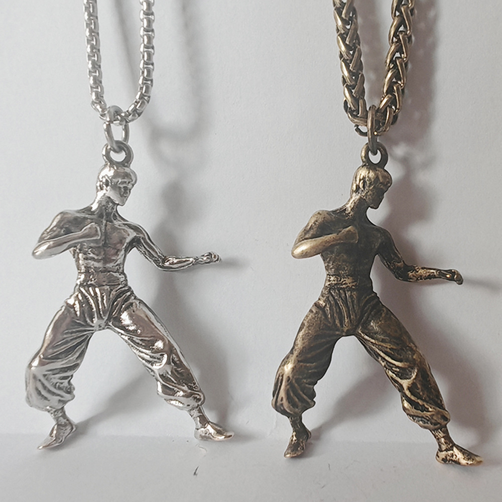 Bruce Lee King of Kung Fu Jewelry Keychain Invincible Inch Punch Statue Bronze Statue Crafts Ornaments Small Necklace
