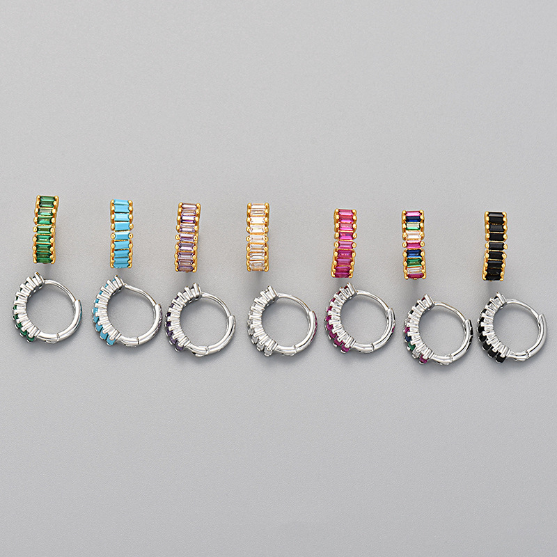 European and American Cross-Border Rectangular Zircon Earrings Hot Selling Sweet Earrings Bohemian Versatile Earrings Light Luxury Style