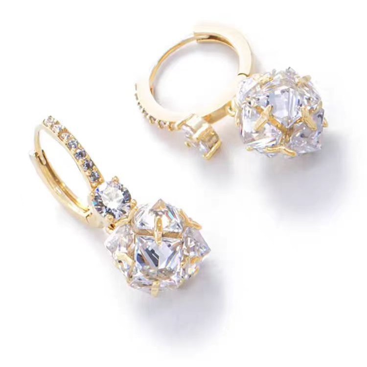 New Style Elegant Luxury Internet Famous High-grade Shining Zircon Double Diamond Light Luxury Design European and American Cross-border Fashion Women's Earrings