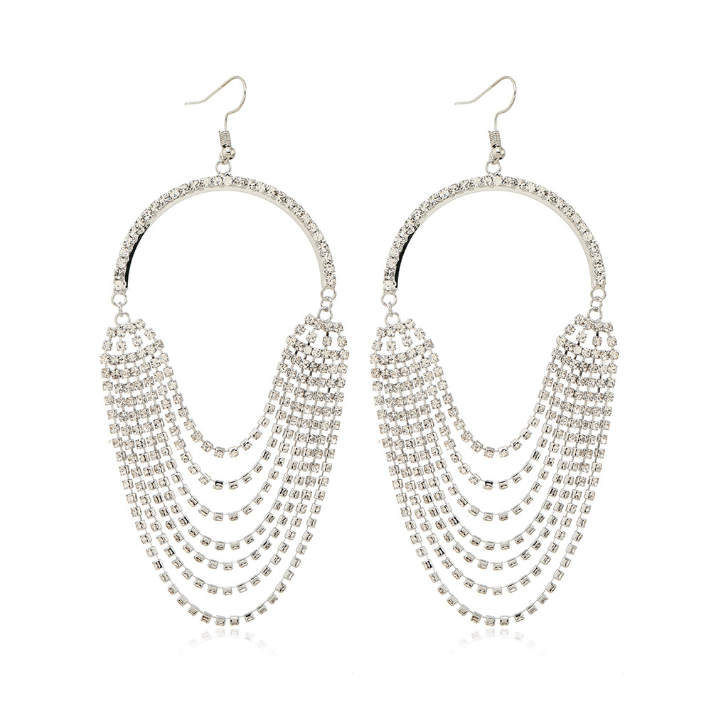 Cross-Border Popular Hot Girl Colorful Zircon Foreign Trade Exclusive Tassel Pendant Light Luxury Versatile Ear Cuffs Earrings for Women