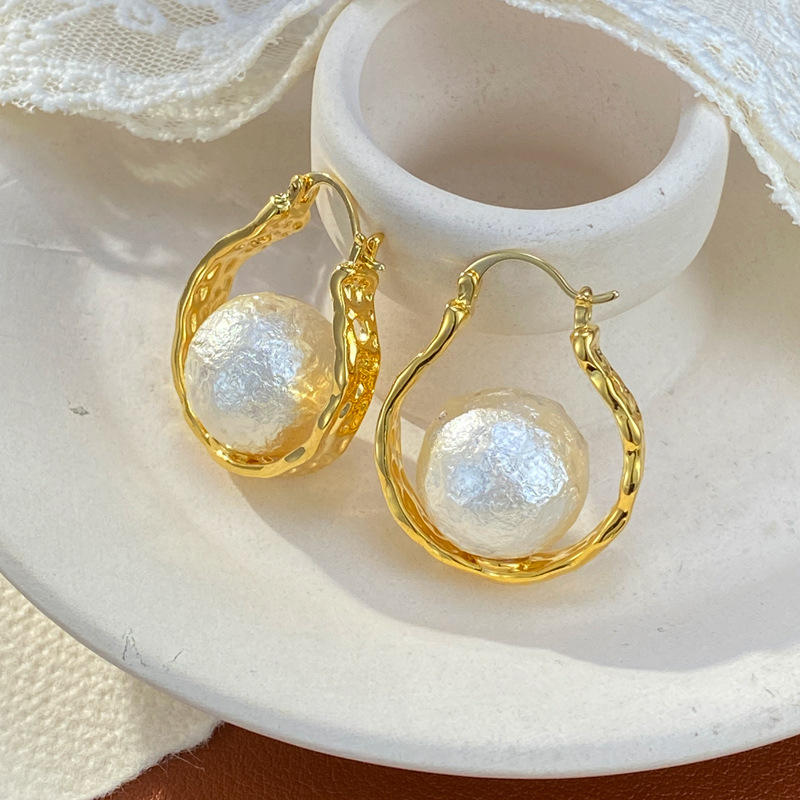Amazon Cross-Border Metal Drop-Shaped Cotton Bead Earrings for Women, Personalized Light Luxury, Simple, Elegant and Versatile Earrings Wholesale
