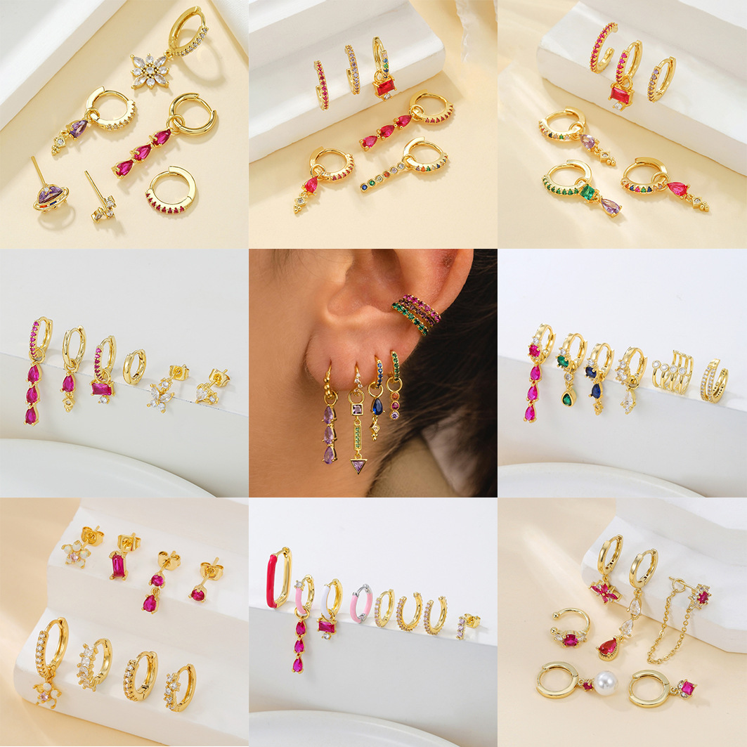 European and American Light Luxury High-End Colorful Zircon Hoop Earrings, Real Gold Electroplated Vintage Niche Design New Earrings and Ear Accessories