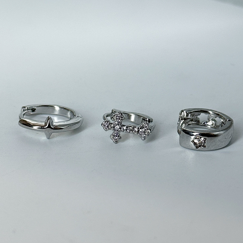 Sweet and Cool Simple Star Cross Earrings, Versatile Plain Hoops, Stacked Glossy Earrings, Daily Exquisite Earrings
