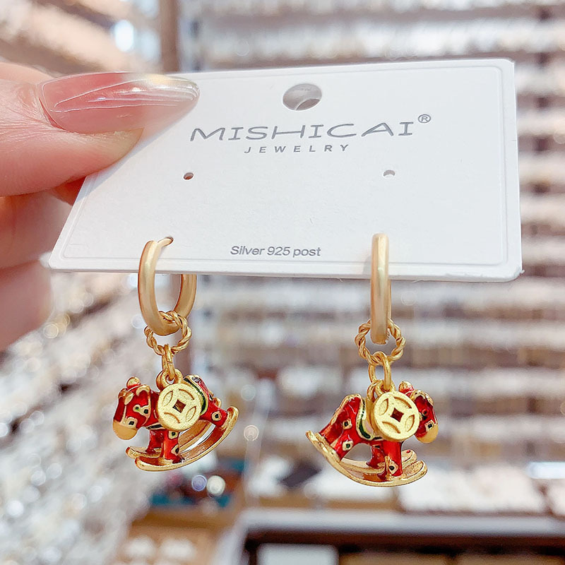 Exquisite and Fashionable Oil-Dropping Zodiac Horse Earrings, High-End and Elegant, Internet Celebrity Versatile Earrings, Niche Design Geometric Earrings