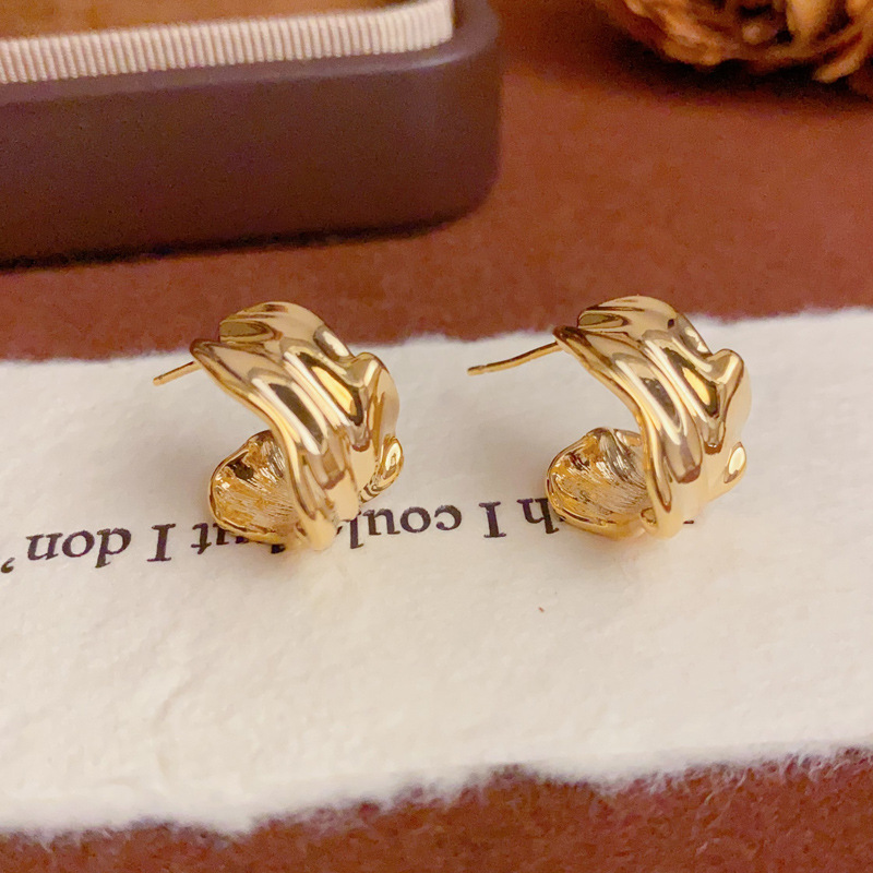 Amazon Cross-Border 18K Gold Irregular Pleated Metal C-Shaped Earrings for Women, Stylish and Minimalist Hoop Earrings Wholesale