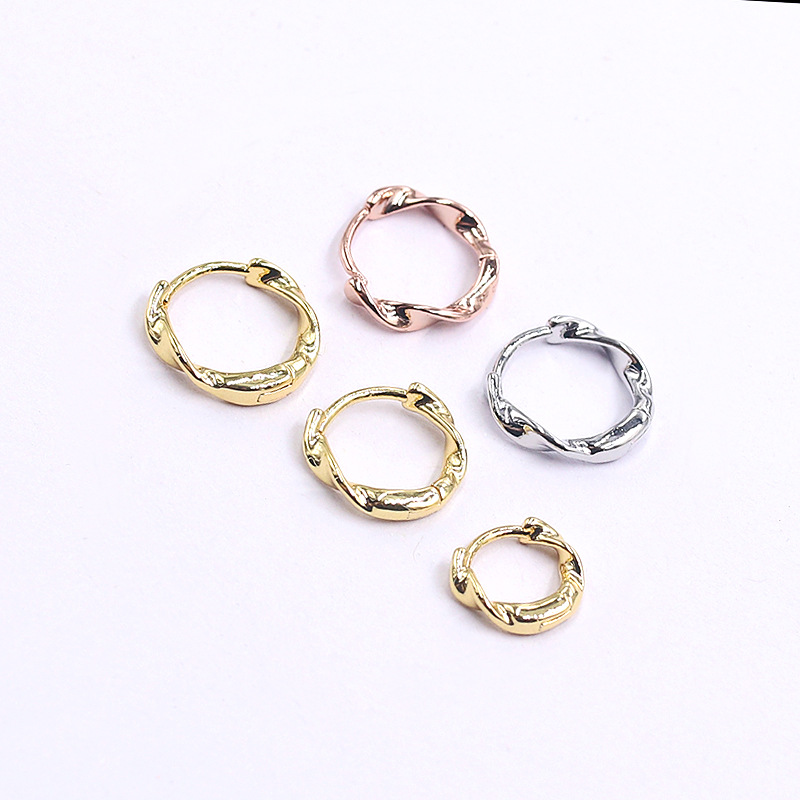 INS Cute Sweet Style Women's 18K Gold Plated Plain Surface Gloss Diamond Twist Chain Ear Buckle Earrings Earrings Earbone Buckle