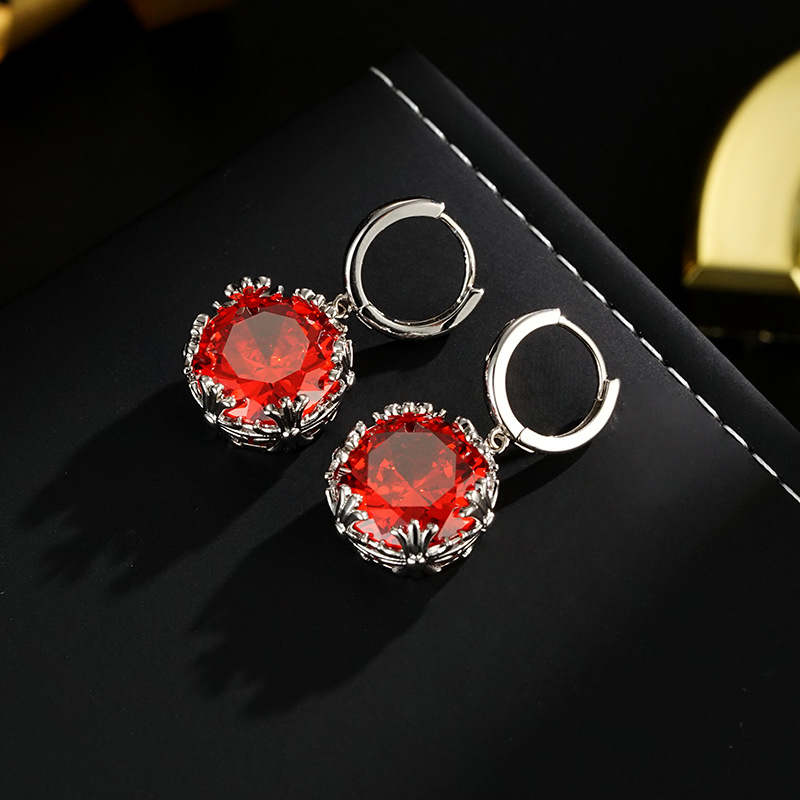 S925 Fashion Light Luxury High-End Pomegranate Red Earrings Retro Heavy Craftsmanship Inlaid Simple Exquisite Earrings Fashion Versatile