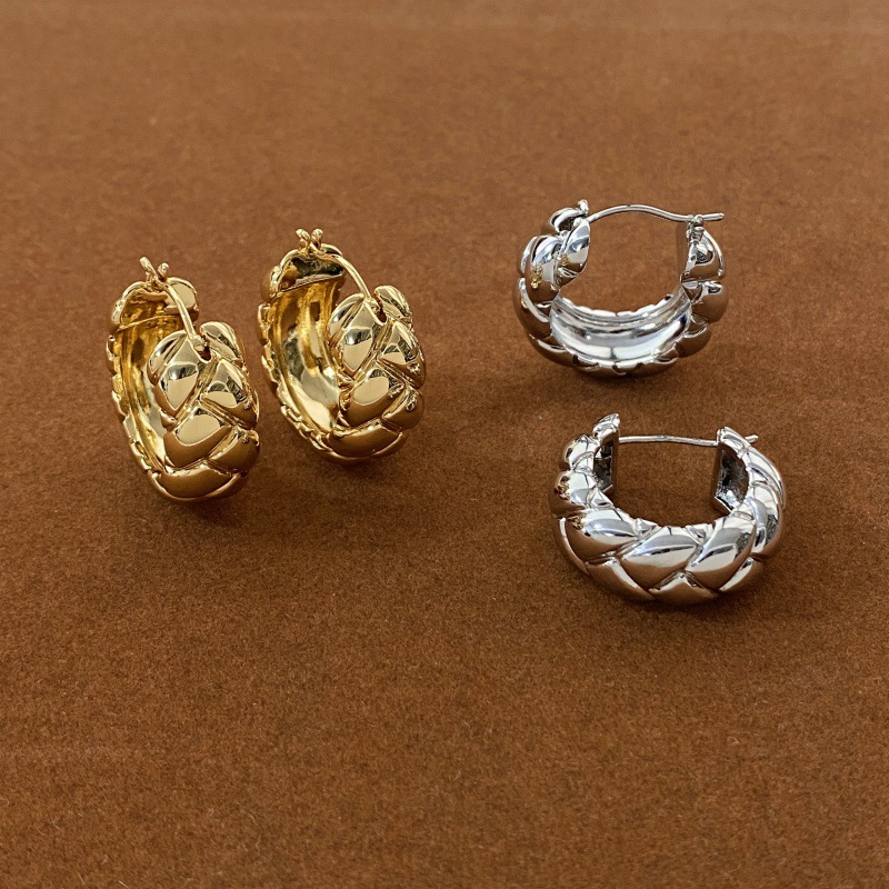 Autumn and Winter New Wide-Faced Quilted Earrings for Women, Accessible Luxury Niche, High-End European and American Small Fragrance Style, Versatile Earrings and Earrings