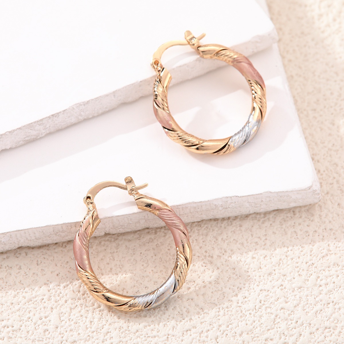 Wholesale Heart-Shaped Hoop Earrings with French-Style Circle Design, Similar to Liu Yifei's Style, Featuring a Small Chanel-Inspired Cross Tire Texture