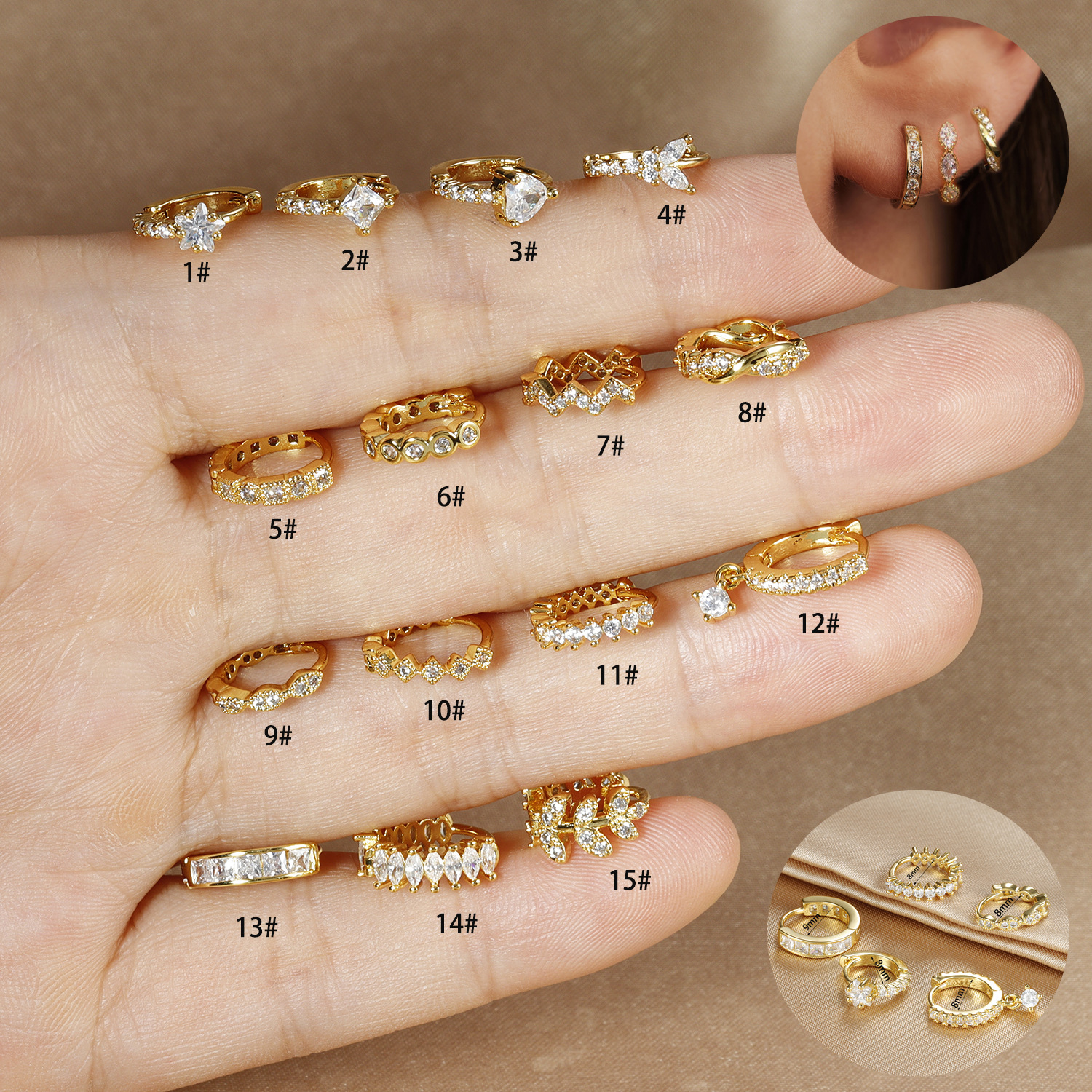 Cross-border personalized fashion earrings mini round zircon earbuckle female European and American ear piercing jewelry spot wholesale