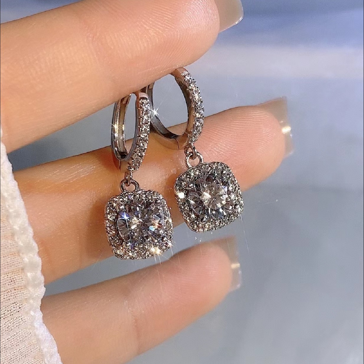 Trendy Princess-Cut One-Carat Simulated Moissanite Earrings for Women, Fashionable and Versatile