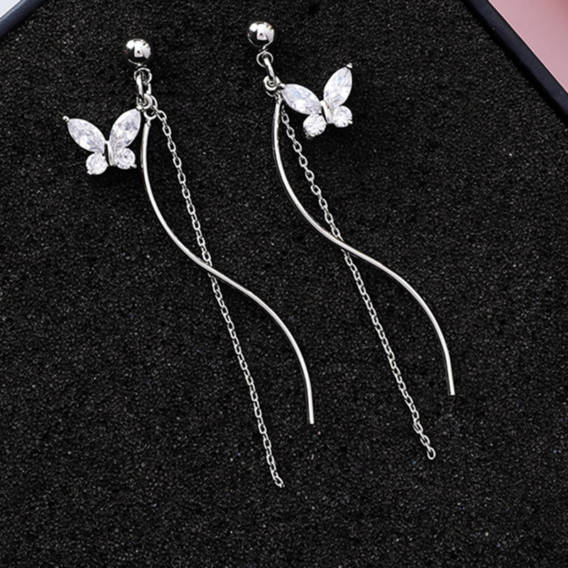 Super Fairy Butterfly Tassel Earrings Female Temperament Korean Personality All-match Long Ear Clip Cold Wind Face Thin Earrings