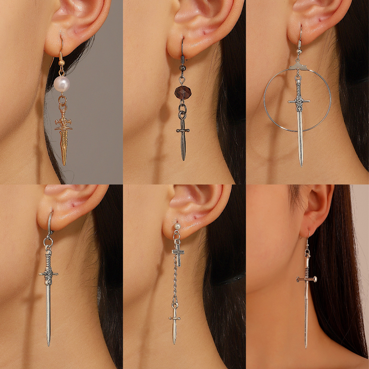 European and American Dark Punk Alloy Cross Sword Earrings Retro Personality Exaggerated Dagger Earrings Cross-border Fashion Earrings for Women