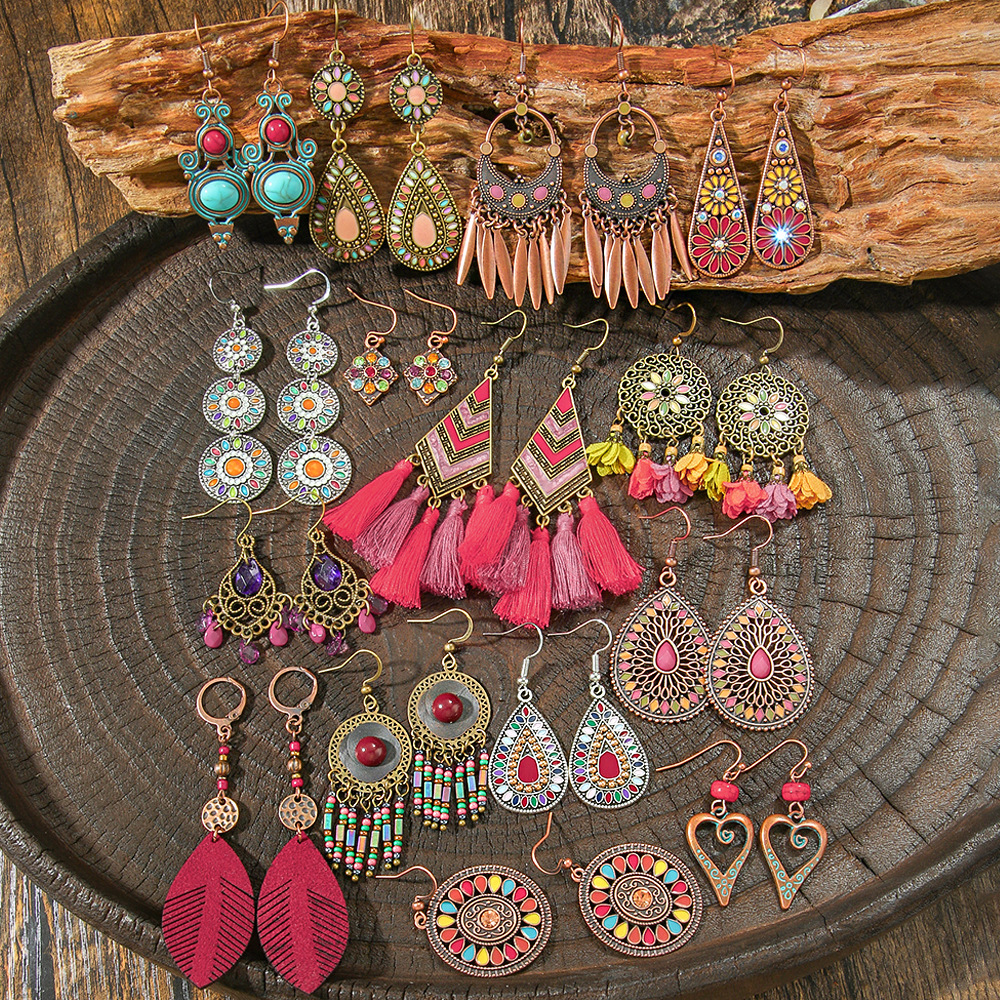 Bohemian Ethnic Style Earrings Hot Selling Vintage Distinctive Tassel Earrings Geometric Design Sense Jewelry Accessories Yiwu