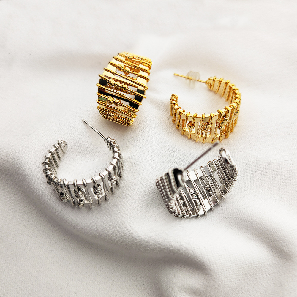 Middle ancient jewelry C classic INS wind copper plated 18K real gold personality earrings niche high-end earrings wholesale