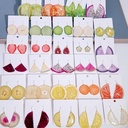 Real Fruit Earrings Natural Lemon Strawberry Orange Kiwi Starfruit Fig Apple Glue Handmade Earrings