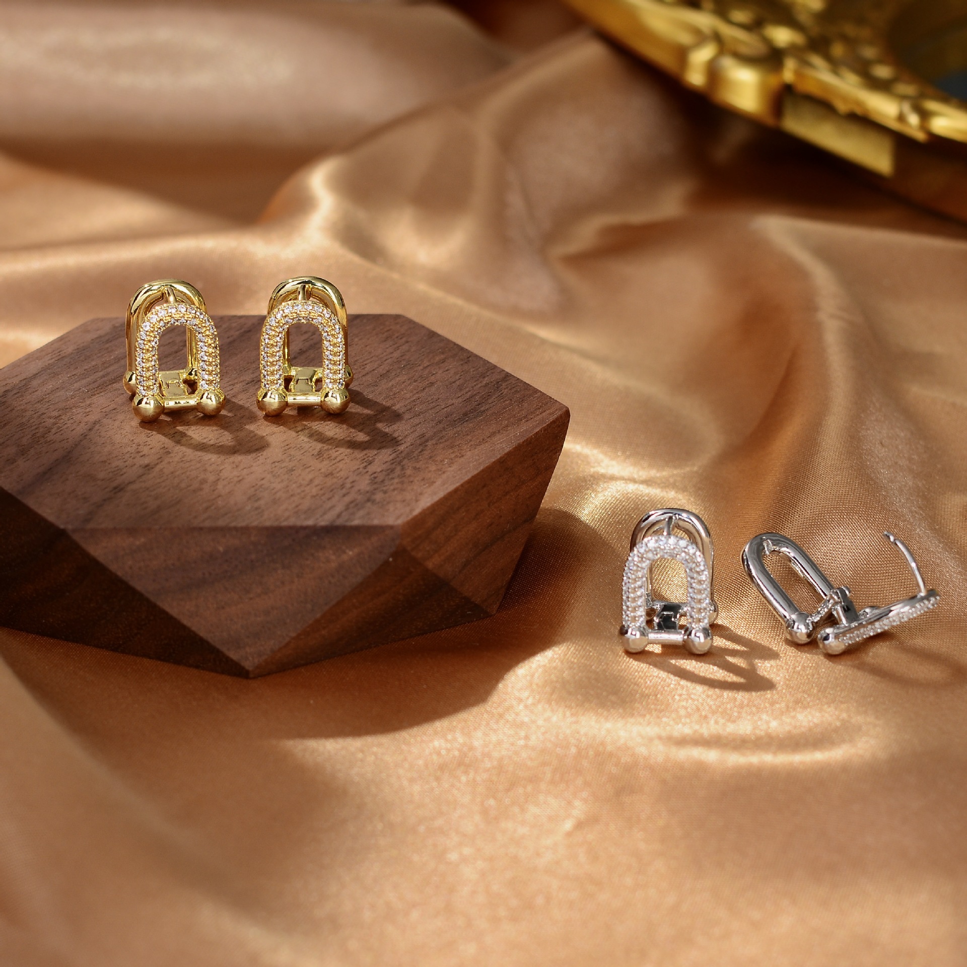 Personalized Design Horseshoe Buckle Full Diamond Earrings for Women, Gold-Plated Copper, Accessible Luxury, Exquisite and High-End Commuter Earrings That Will Not Fade
