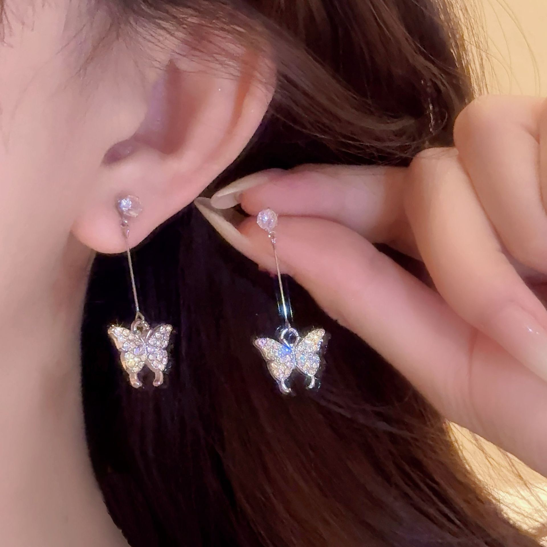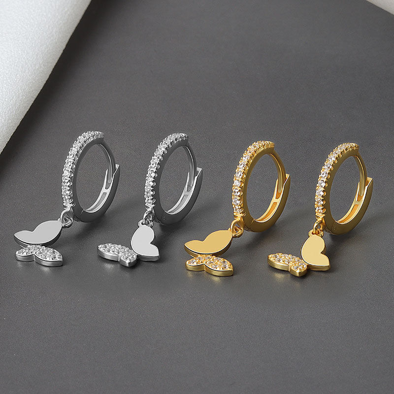 Copper Alloy Earrings Simple Butterfly Earrings for Women 2025 New Hot Style High-End Super Flash Popular Accessible Luxury Earrings