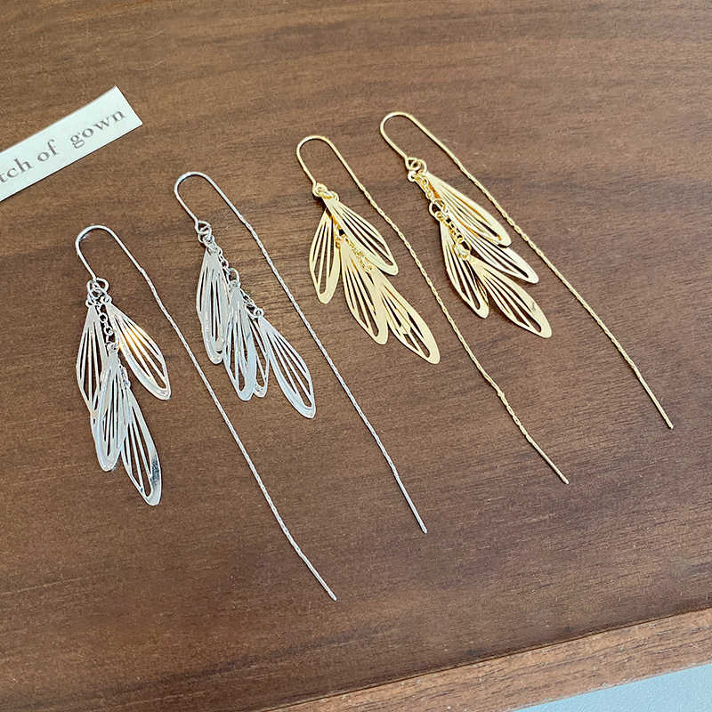 Long Wing Tassel Earrings for Women, Korean and Japanese Niche Design, Stylish Earrings, 2025 New Model, Face-Slimming Small Earrings
