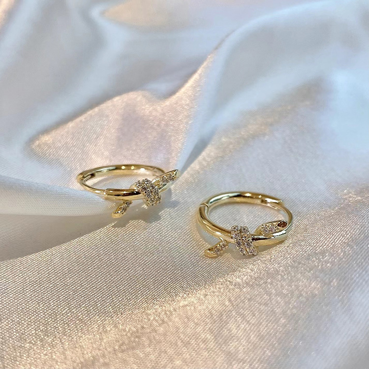 Gold-plated micro-inlaid niche design high-grade gold knotted rhinestone earrings female South Korea Internet celebrity light luxury earrings earrings earrings