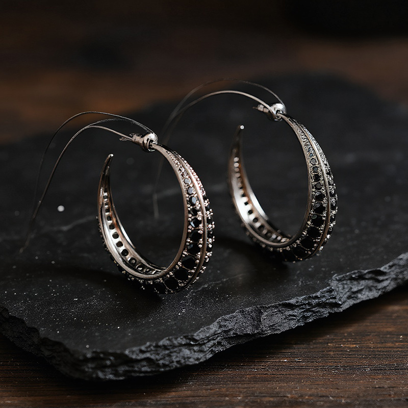 New European and American Style Personalized Black Zircon Earrings Environmentally Friendly Copper Plated Gun Black Accessible Luxury High-End Exquisite Earrings