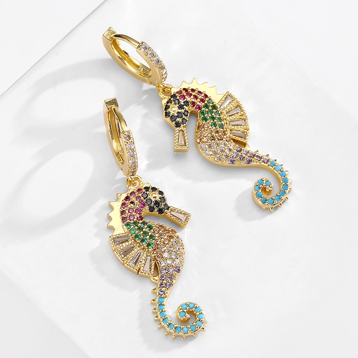 Aogu European and American Niche Accessible Luxury Copper-Plated 18K Gold Zircon Seahorse Earrings for Women Ins Trendy Personalized High-End Earrings New