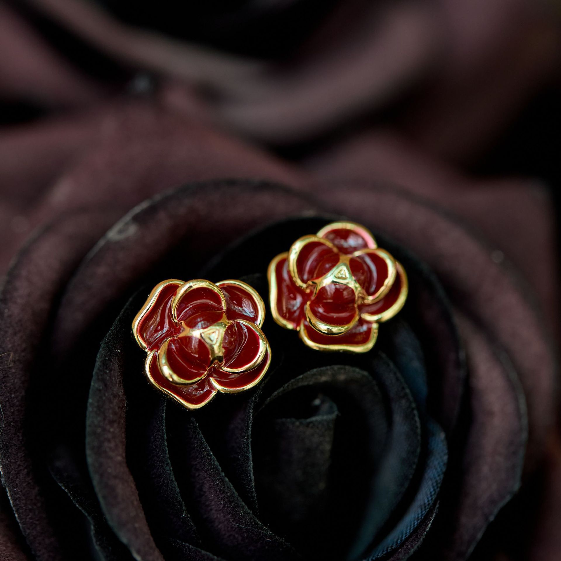 [Dry Rose] Ancora Red Camellia Earrings Mosquito Repellent Disc Ear Clip No Piercing Autumn and Winter High-End Earrings