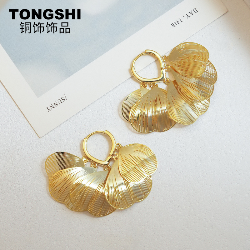Spring and summer jewelry European and American merchants super jewelry factory wholesale high-grade earrings exaggerated earrings golden pleats