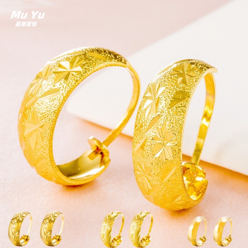 Brass Gold-Plated Gypsophila Earrings Ethnic Style Meteor Shower Earrings Vietnamese Sand Gold Glossy Round Earrings for Mom