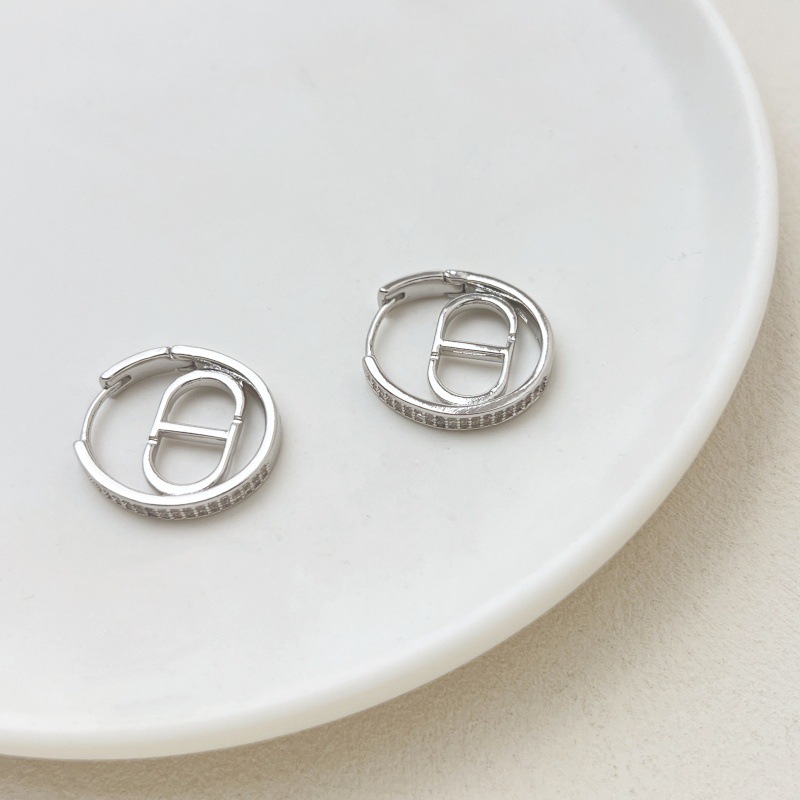 Light Luxury Style Zircon Letter Micro-Inlaid Hollow Versatile High-End Earrings Fashionable Simple Design Elegant Earrings for Women