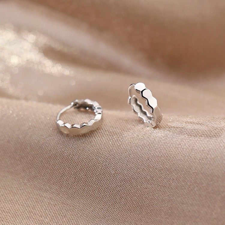 Ear ring honeycomb hexagonal shiny ear buckle temperament daily earrings temperament Daily female South Korea earrings cold style earrings