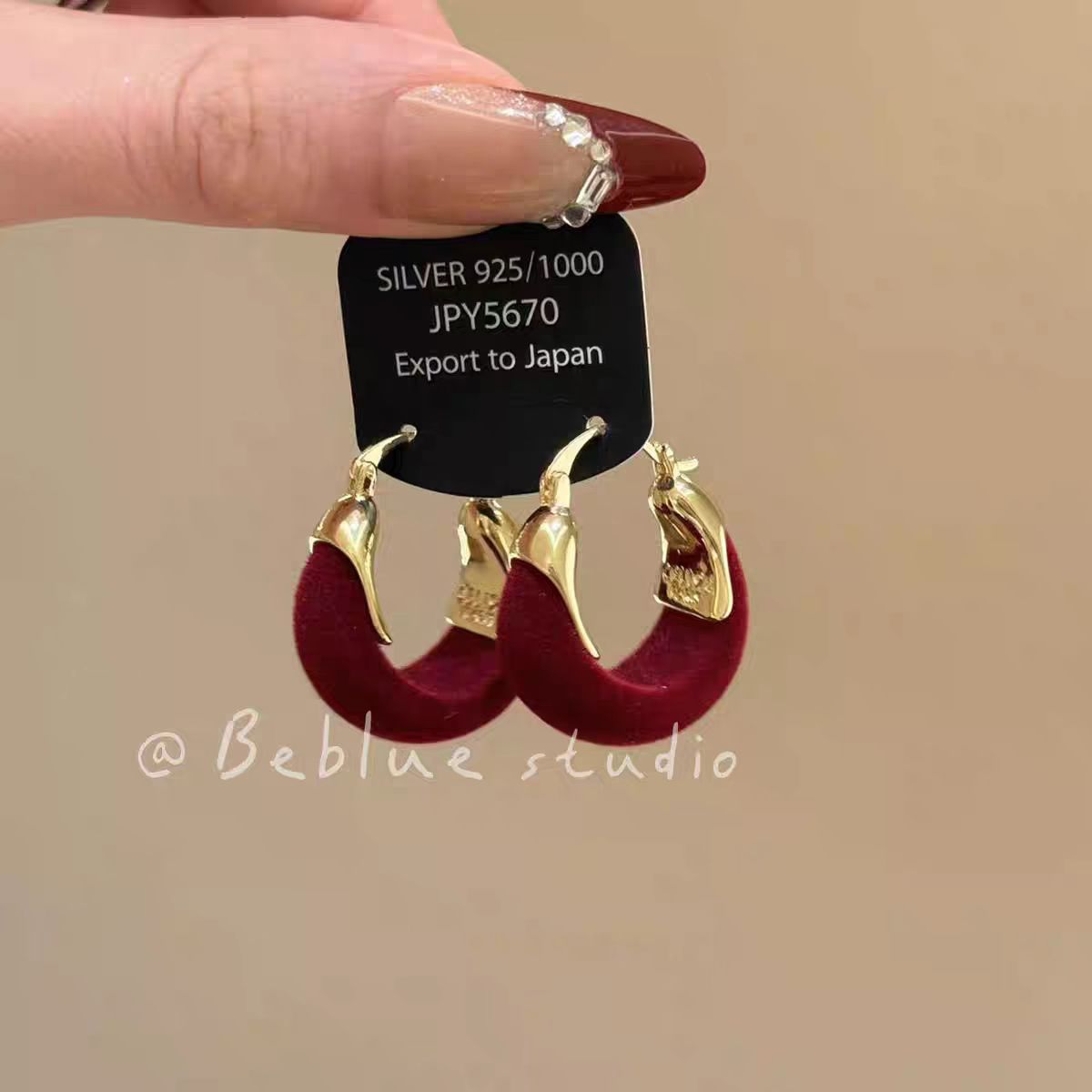 Retro U-Shaped Red Flocked Earrings 2025 Autumn and Winter New Fashion Niche Design High-End Earrings Women's Earrings