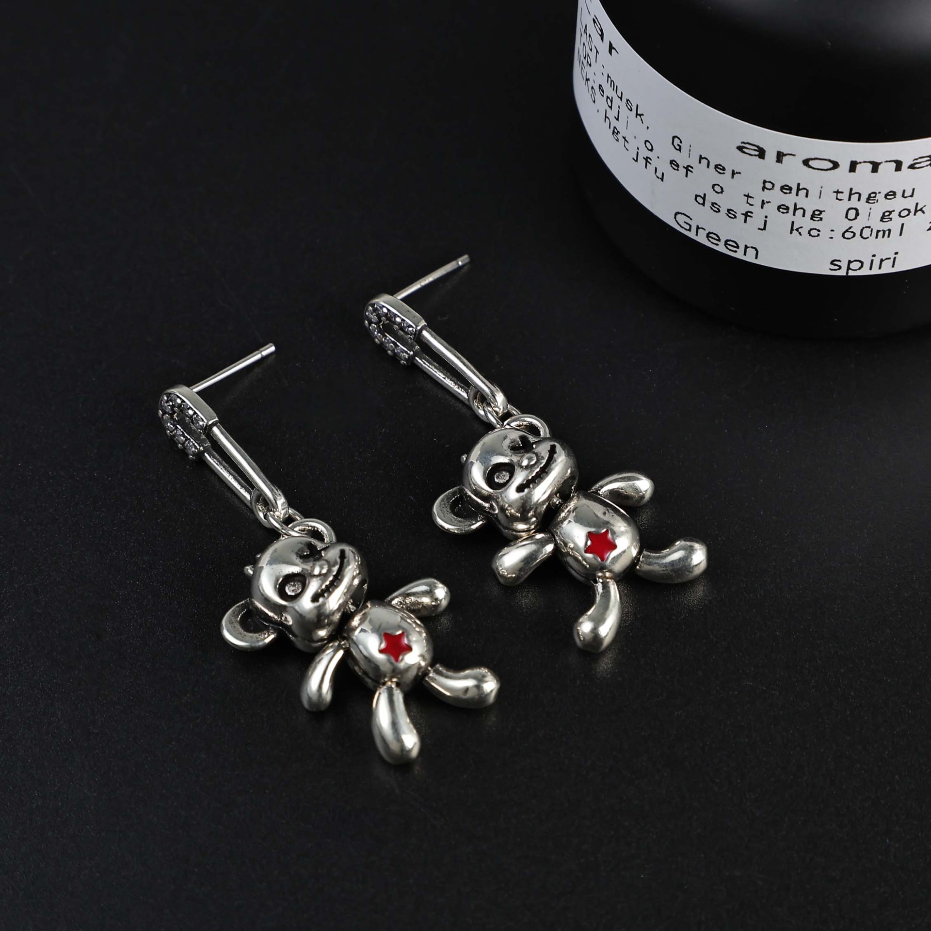 Creative Pin-Style Animal Bear Earrings, Personalized, Fashionable and Cool, Copper Silver-Plated Material, Long-Lasting Color Retention