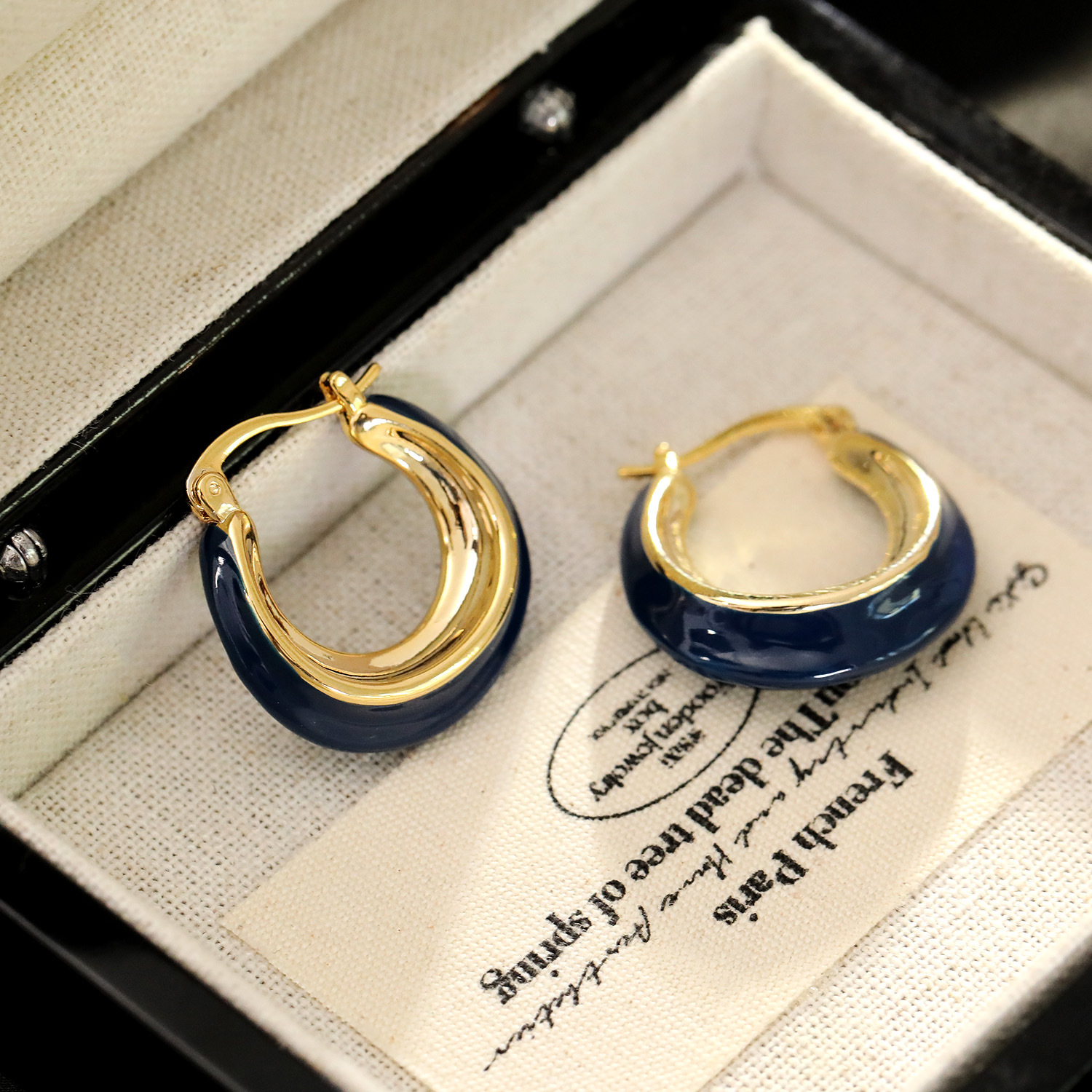 2025 New French Retro Klein Blue Earrings Niche Design Summer Easiest for Match Oil Drop Earrings