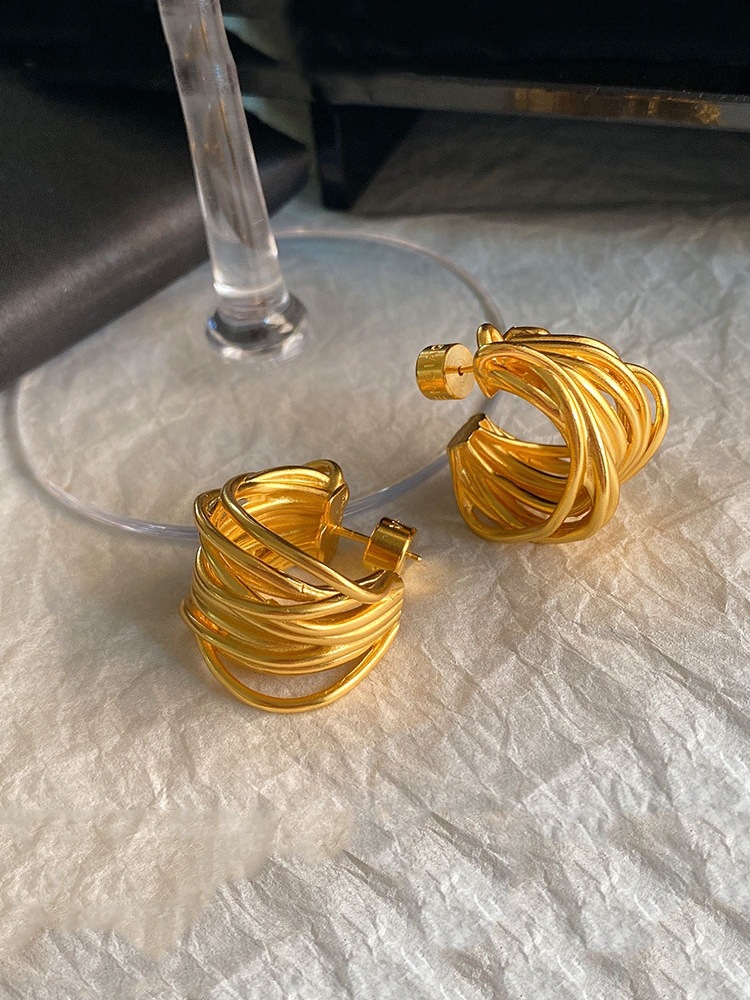 2023 autumn and winter new gold-plated hollow winding C- shaped circle earrings retro high-end European and American earrings