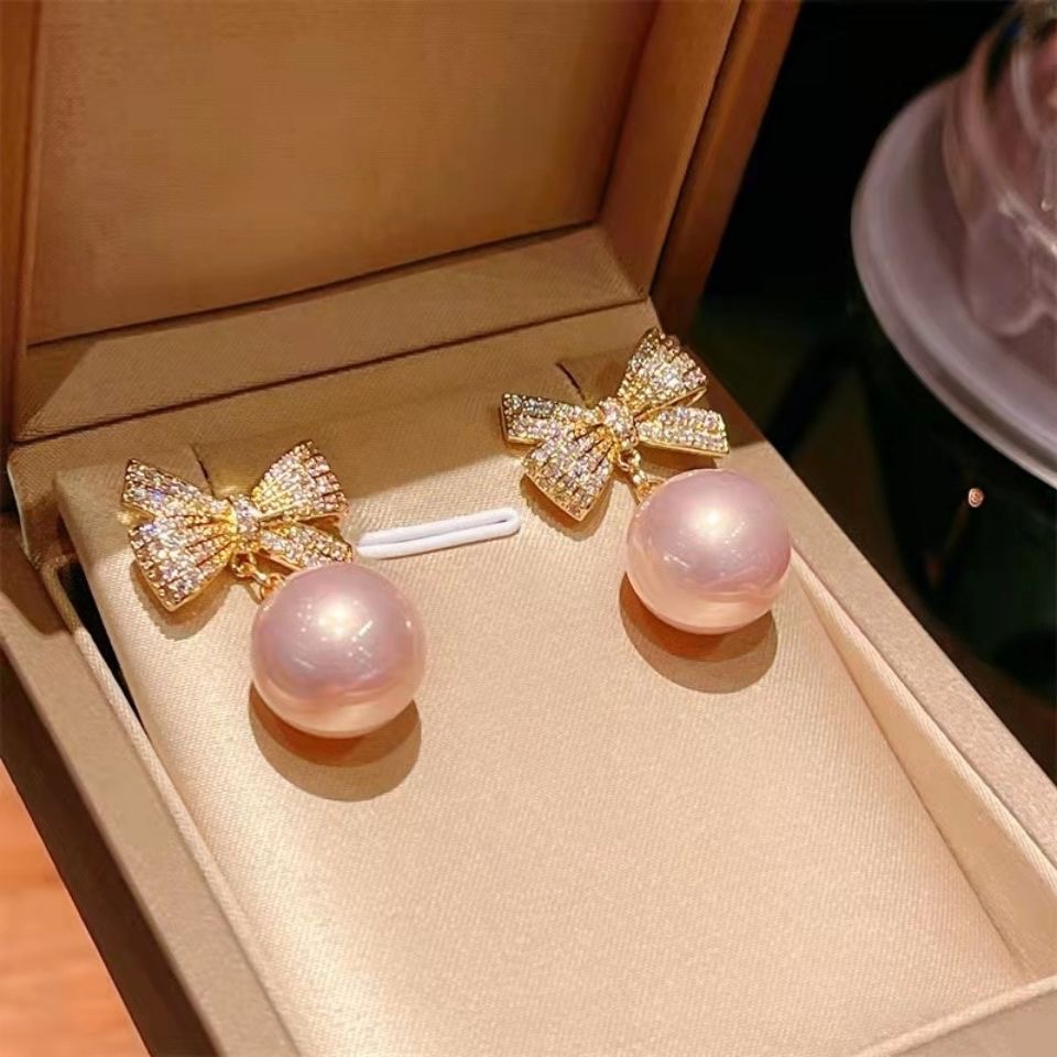 French retro metal ball light luxury white dripping earrings high-grade wine red real gold color retaining earrings for women