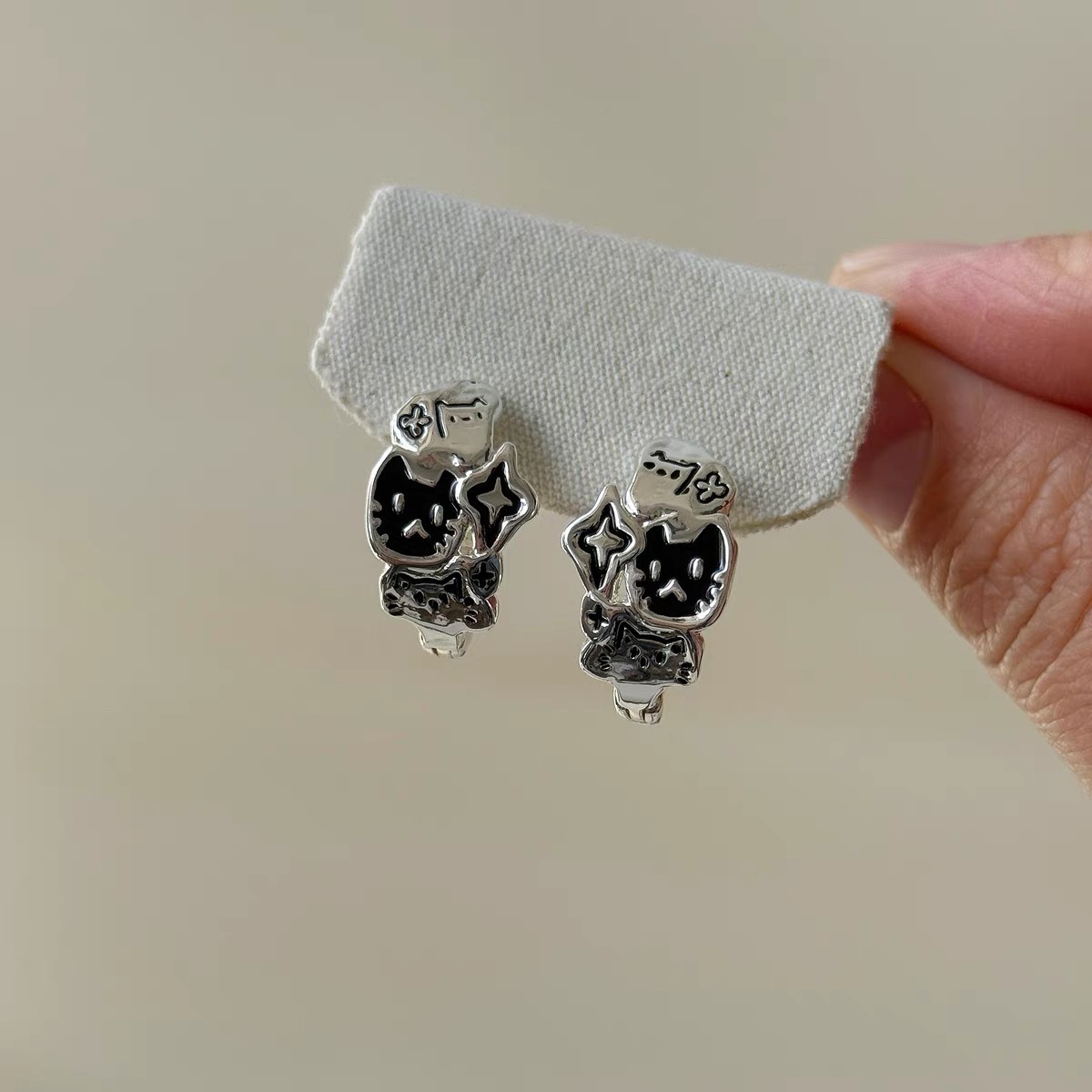 Niche Design Graffiti Black Line Cat Cartoon Earrings Cool Style Versatile Cute Elegant Fashion Accessible Luxury Earrings