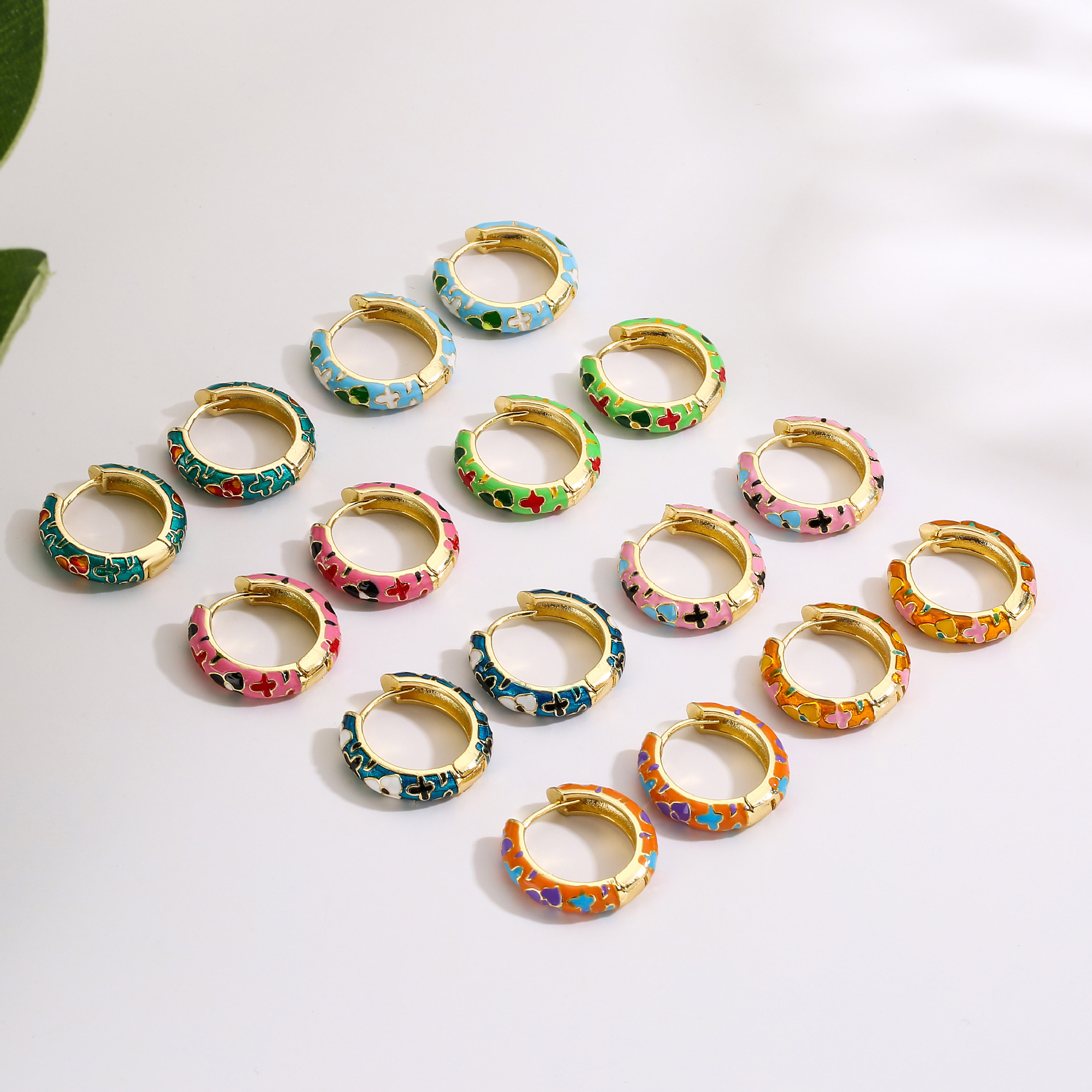 HECHENG Jewelry Pastoral Style Color Enamel Oil Dropping Camellia Flower C- shaped Ear Buckle Personalized Color-matching Flower Bud Earrings