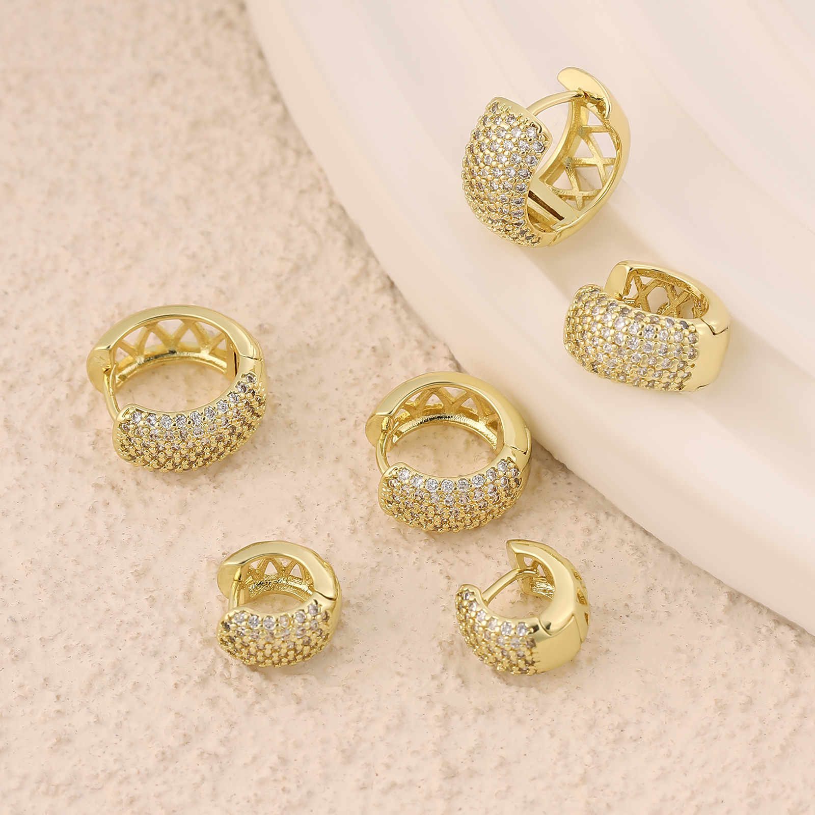 Zircon Hoop Earrings, Multi-Size Full Diamond Earrings, Gold-Plated Copper, Small Earrings, Creative Geometric Piercing Jewelry for Women