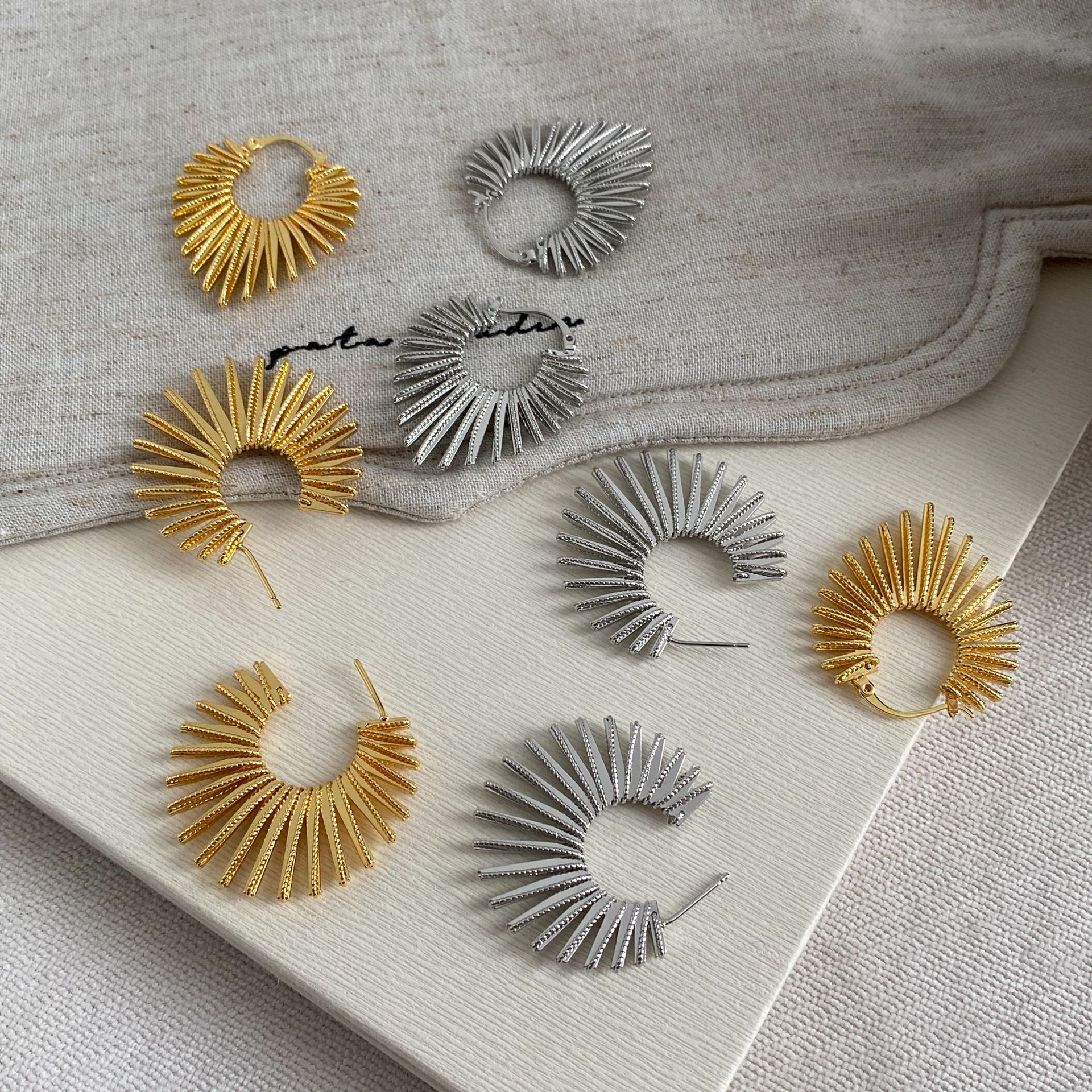 Sunflower European and American Simple Earrings for Women Gold Retro Niche Fashion Exaggerated Earrings Personality Versatile Cross-Border Wholesale