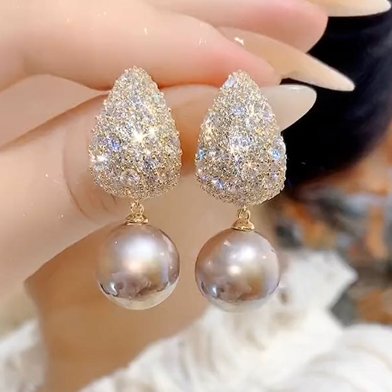 2023 new fashion style pearl earrings Women's Light luxury full diamond elegant all-match earrings high-grade exquisite earrings