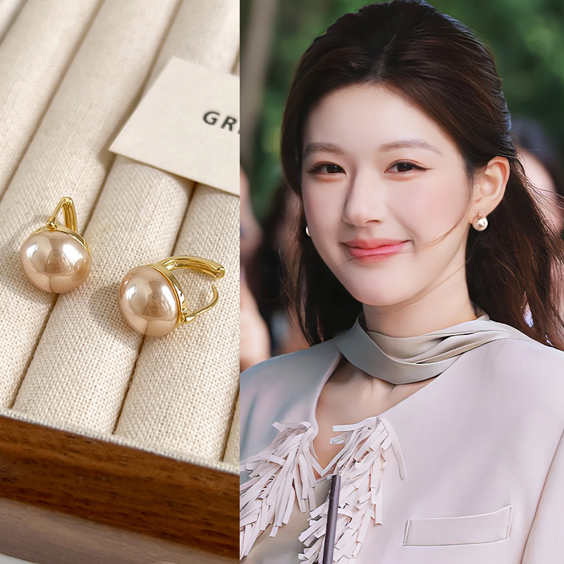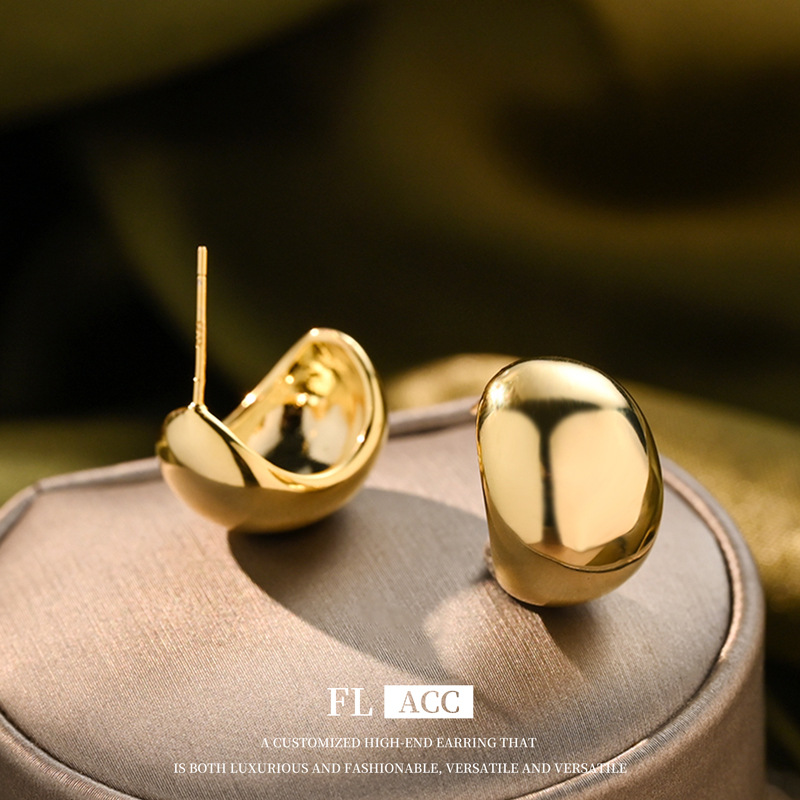 French Retro Style Copper Plated with Real Gold 18K Glossy Bean Earrings, Ear Studs, Light Luxury, High-End Feel, Fashionable and Versatile Earrings