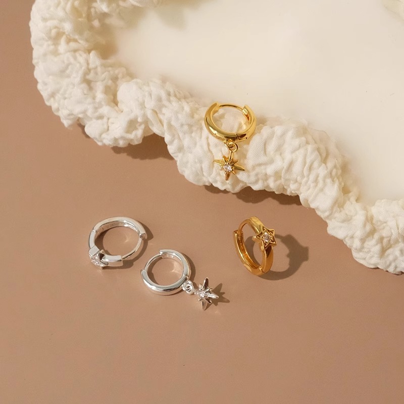 Cross-Border European and American Five-Pointed Star Colorful Zirconium Earrings, Sweet, Fashionable, High-Quality Colorful Earrings, Heart Piercing Earrings, Earrings