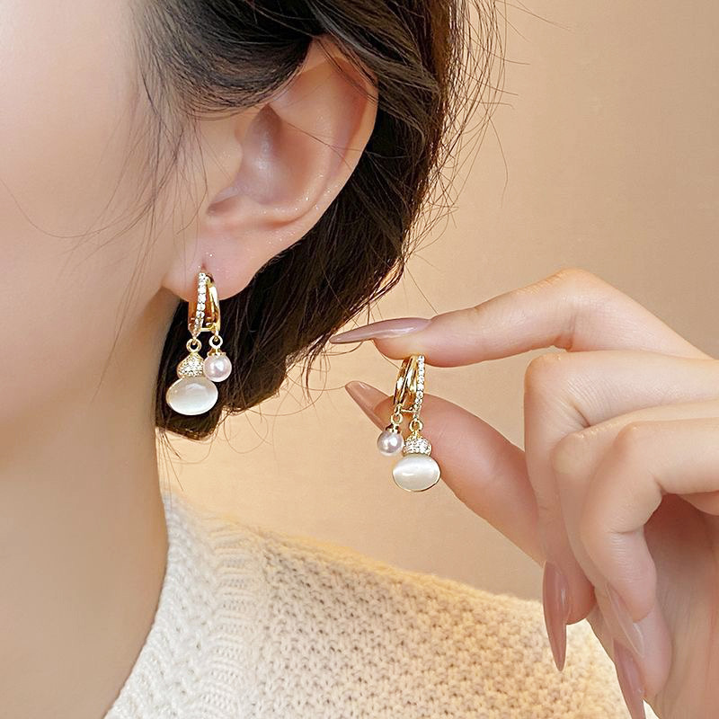 Cat's Eye Gourd Earrings Women's Niche Design High-End Pearl Earrings Temperament Fashion Easiest for Match Trendy Earrings Wholesale