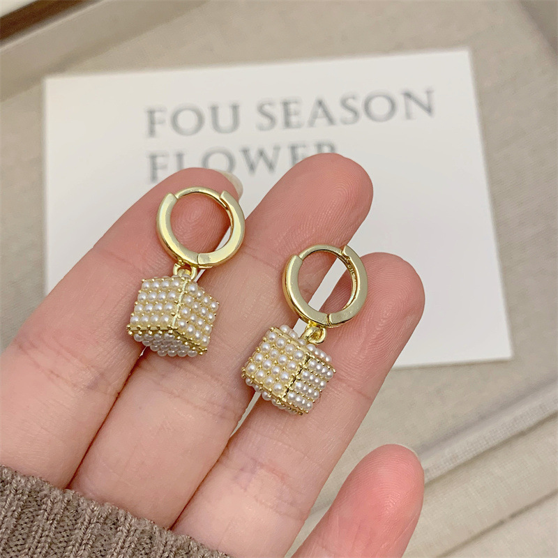 Pearl Full Diamond Square Earrings Ins Style Earrings Simple Elegant All-match Niche Earrings French Vintage Earrings
