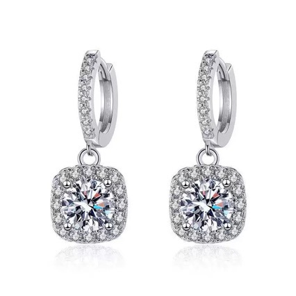 Live Fashion Classic Four-Claw Imitation Moissanite One-Carat Princess Bag Earrings Women's Earrings Hypoallergenic Earrings