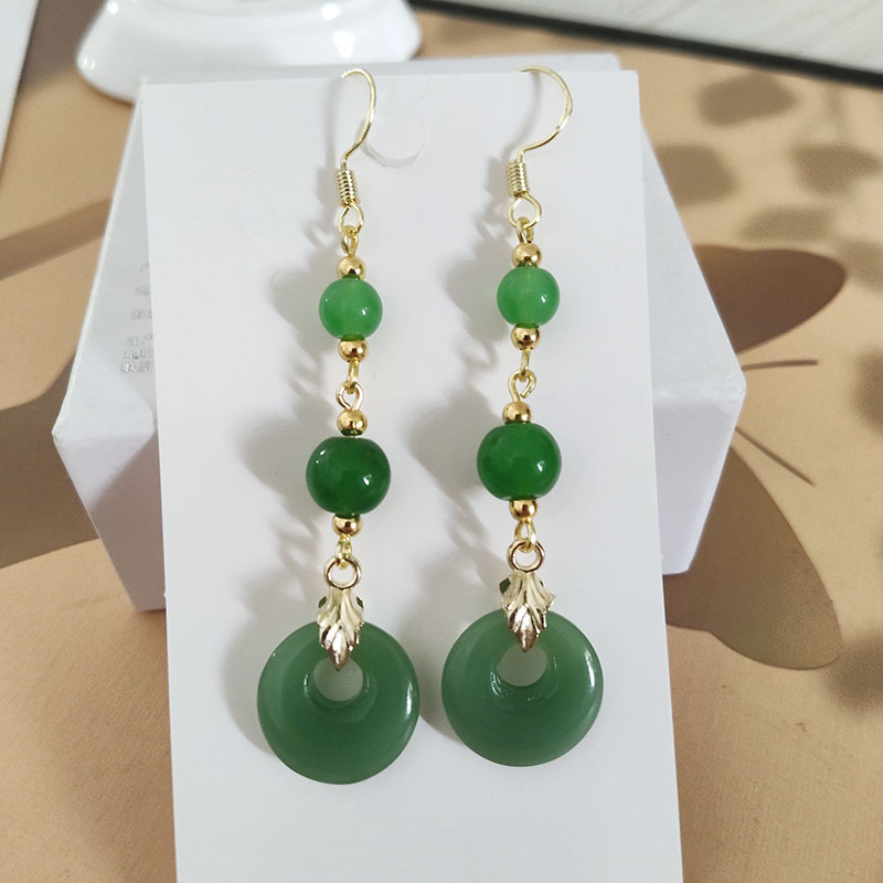 Green Safety Buckle Earrings Simple Earrings Chinese Style Wholesale Chinese Style